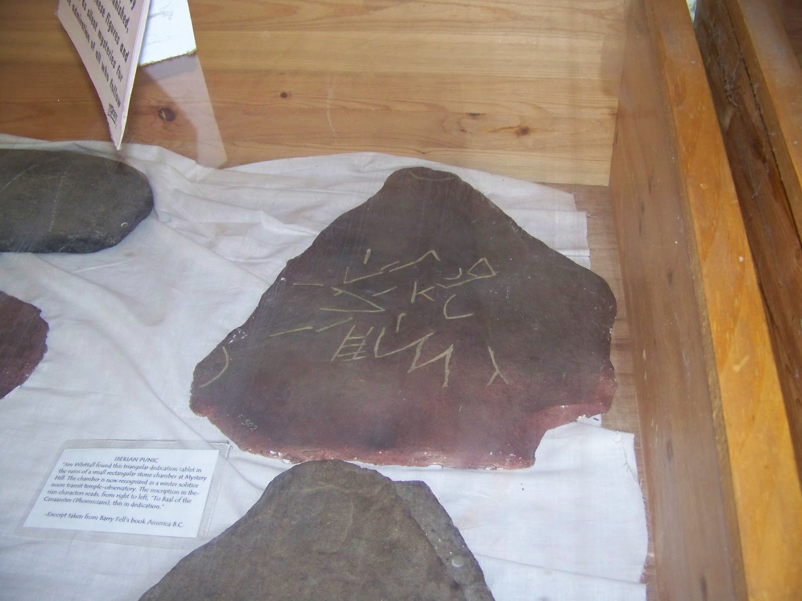 Barry Fell, a subsequent researcher, believed that the site may have been even older, and contained evidence of Phoenician occupation. There is a small museum on site, which includes petroglyphs said to resemble Old World languages including Phoenican and Celtic: