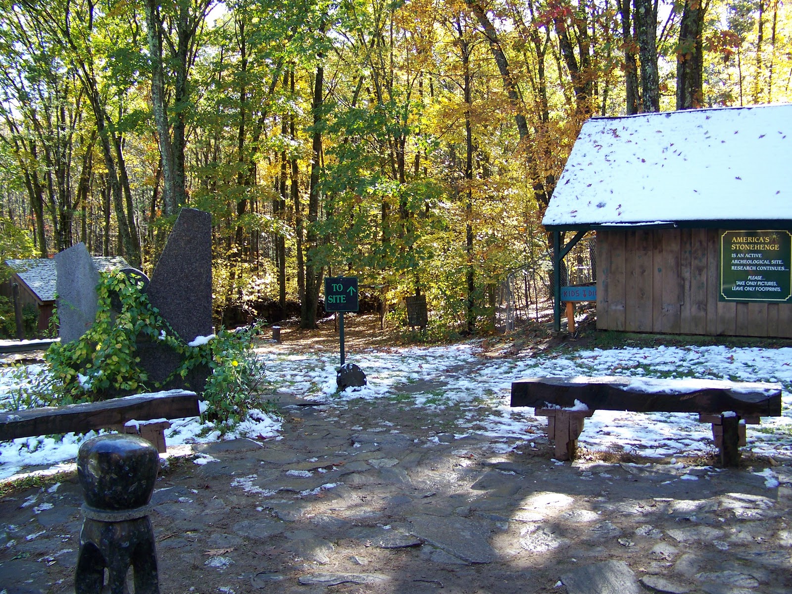 Yesterday my lovely bride Abbey and I went to America’s Stonehenge, a possibly archeological site just outside of Salem, New Hampshire. (Salem, NH, by the way is an unnecessarily confusingly close 37 miles from Salem, MA. Manchester, NH and Manchester, MA, and Concord, NH and Concord, MA are in a similar vein. As are Burlington, MA and Burlington, VT, although those last two at least have the decency to be separated by 200 miles. But that’s not what we’re here today to discuss…)