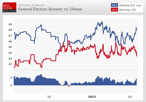 So where do we stand on the eve of all of this? The Real Clear Politics “poll of polls” now has six polls from August in its mix, and is showing Obama with a more than four-point lead: