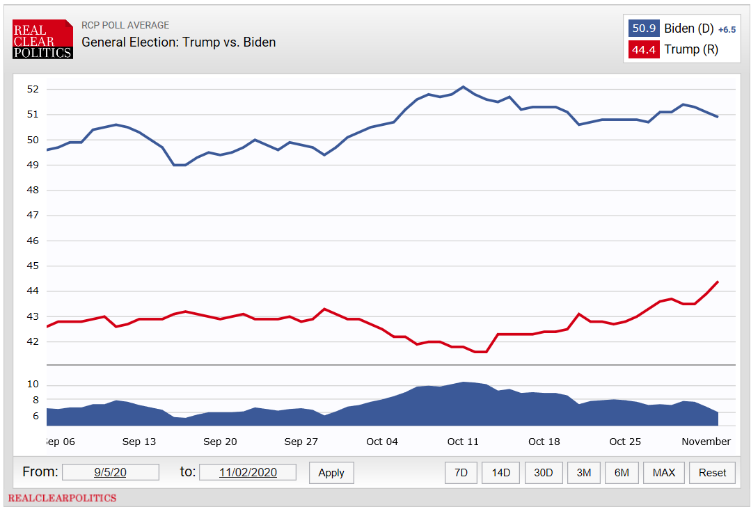 Well now, with one day to go, it’s put up or shut up time. Looking at the evidence, I think it’s overwhelmingly likely that Biden will win tomorrow (even if the result isn’t certain for a few days to a few weeks). Let’s take the evidence piece by piece.
