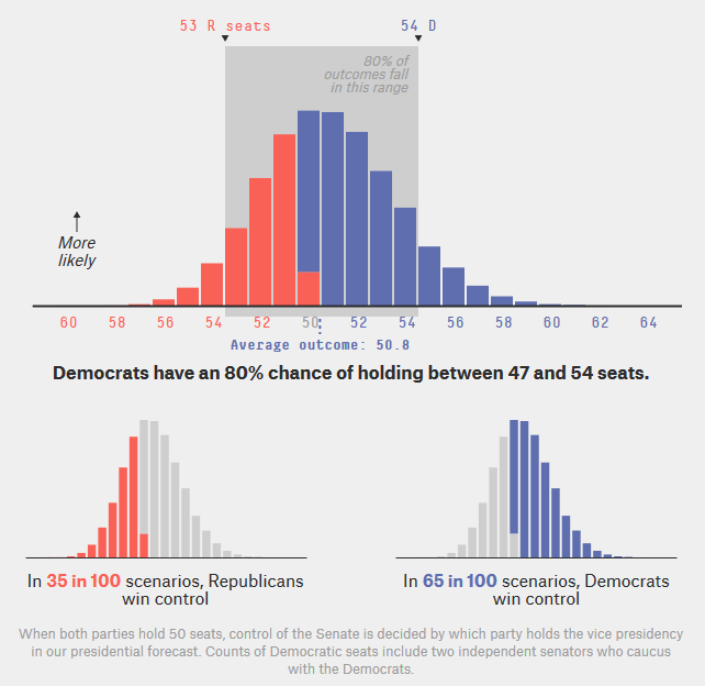 And 538 is projecting a 76% chance that Democrats re-capture the Senate: