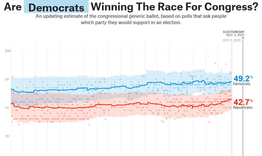 And 538’s model finds a 98% chance that Democrats keep the House, and even slightly increase their margin there: